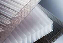 Multi-wall polycarbonate is available in three thicknesses - 16mm, 25mm and 35mm. It is available in a choice of clear, opal, bronze, bronze-on-opal, grey-on-opal (Heat guard) and blue.