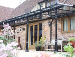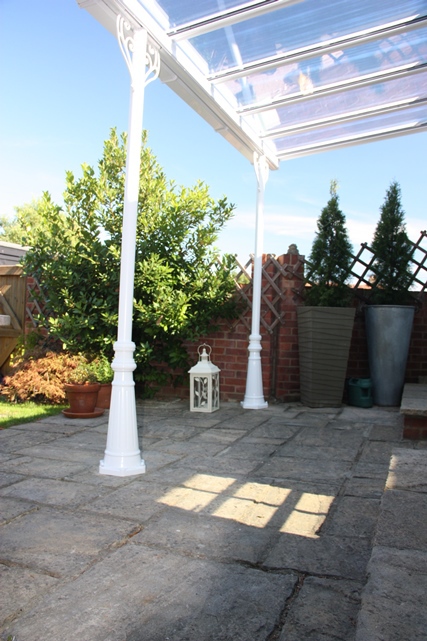 Classic garden canopies use Victorian flared posts with scrolled ornate brackets which give a more traditional look anf feel. The Classic range comes in three standard colours white, black and grey, however we do also offer a bespoke colour matching service. The classic garden canopies come with glass as standard, however they can be glazed with polycarbonate too.